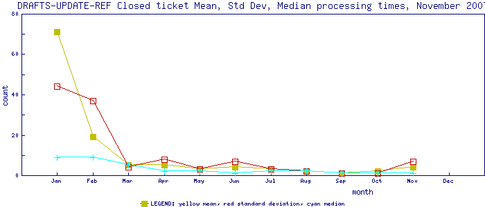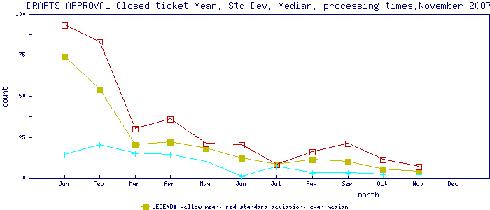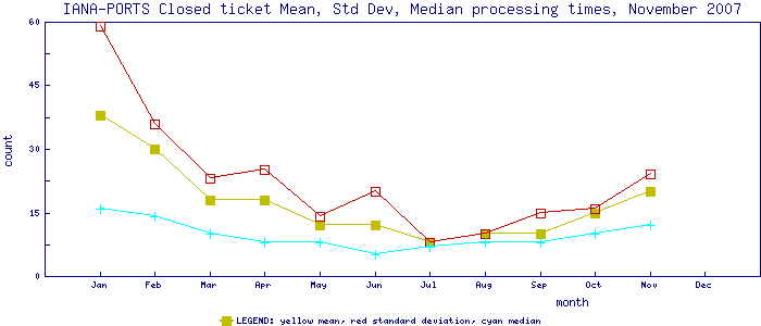 The statistics below are offered to measure IANA's fulfillment of the goals established in the ICANN / IANA - IETF MoU Supplemental Agreement. Further details on these goals and statistics can be found by reviewing the agreement.