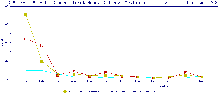 The statistics below are offered to measure IANA's fulfillment of the goals established in the ICANN / IANA - IETF MoU Supplemental Agreement. Further details on these goals and statistics can be found by reviewing the agreement.