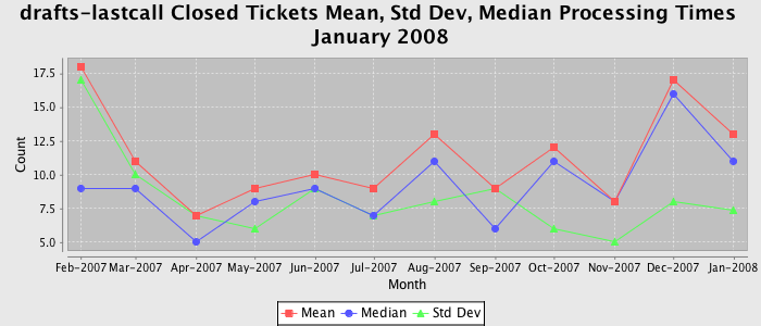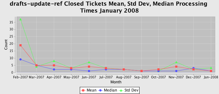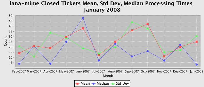 The statistics below are offered to measure IANA's fulfillment of the goals established in the ICANN / IANA - IETF MoU Supplemental Agreement. Further details on these goals and statistics can be found by reviewing the agreement.