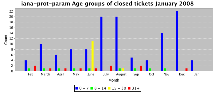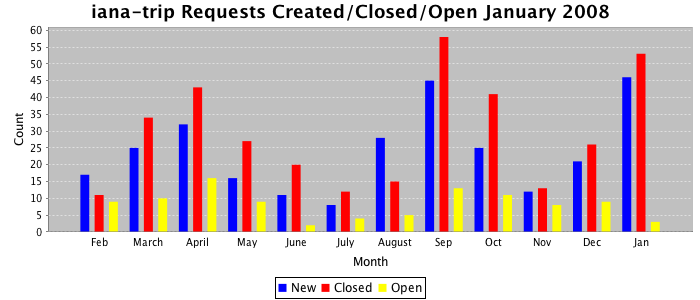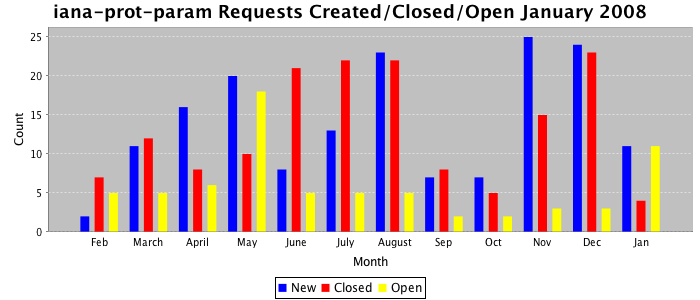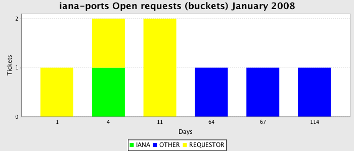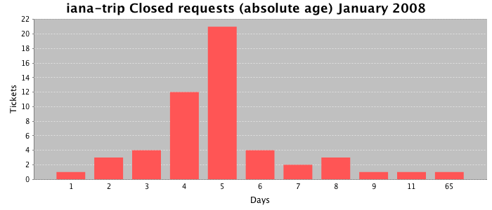 January 2008Due to the nature of resource request reviews, ICANN/IANA and the IETF community are jointly responsible for cooperatively managing the resource request process. ICANN/IANA has control over the functions it performs directly, e.g., receiving requests, making sure they are syntactically and semantically sensible, forwarding the requests to Designated Experts where appropriate, creating and modifying the registries, etc. The IETF community has direct or indirect control over functions performed by third parties, including IESG Designated Experts, the IESG, the IAB, the RFC Editor, and the requester. As such, the processing of requests has a “gross processing time” calendar days goal established for each function and a “net processing time” calendar days goal to reflect time expended directly by ICANN/IANA.