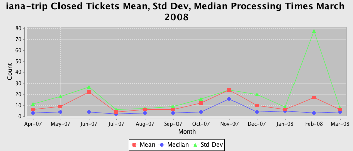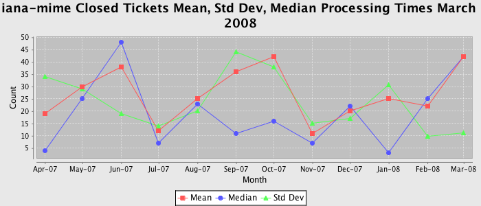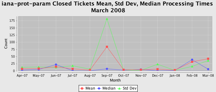 The statistics below are offered to measure IANA's fulfillment of the goals established in the ICANN / IANA - IETF MoU Supplemental Agreement. Further details on these goals and statistics can be found by reviewing the agreement.