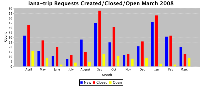 March 2008Due to the nature of resource request reviews, ICANN/IANA and the IETF community are jointly responsible for cooperatively managing the resource request process. ICANN/IANA has control over the functions it performs directly, e.g., receiving requests, making sure they are syntactically and semantically sensible, forwarding the requests to Designated Experts where appropriate, creating and modifying the registries, etc. The IETF community has direct or indirect control over functions performed by third parties, including IESG Designated Experts, the IESG, the IAB, the RFC Editor, and the requester. As such, the processing of requests has a “gross processing time” calendar days goal established for each function and a “net processing time” calendar days goal to reflect time expended directly by ICANN/IANA.