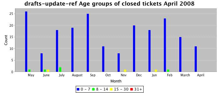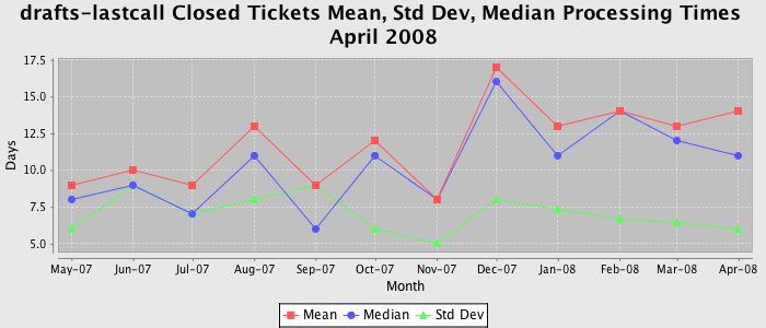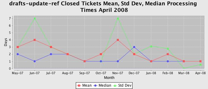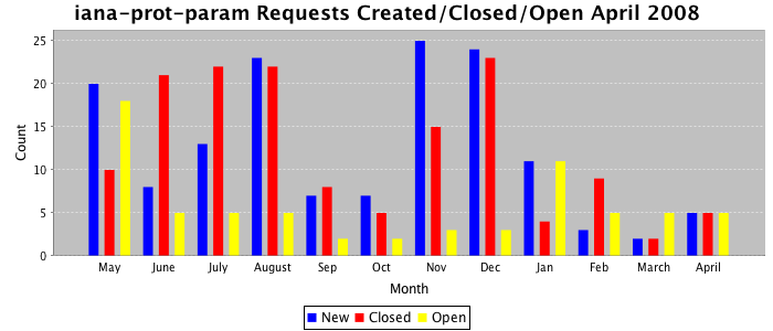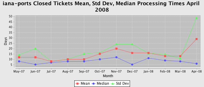 The statistics below are offered to measure IANA's fulfillment of the goals established in the ICANN / IANA - IETF MoU Supplemental Agreement. Further details on these goals and statistics can be found by reviewing the agreement.