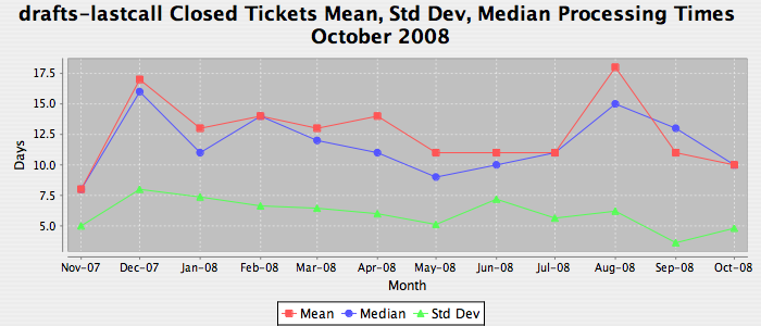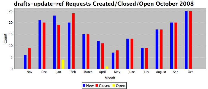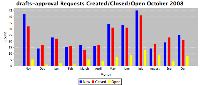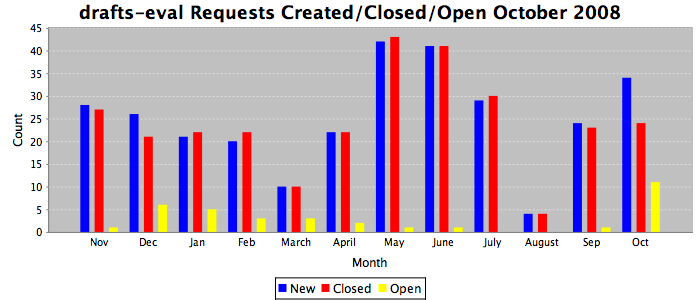 The statistics below are offered to measure IANA's fulfillment of the goals established in the ICANN / IANA - IETF MoU Supplemental Agreement. Further details on these goals and statistics can be found by reviewing the agreement.