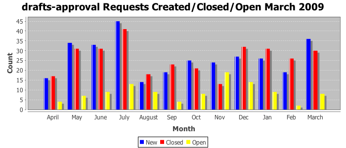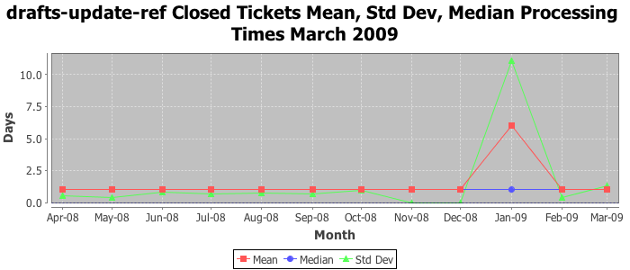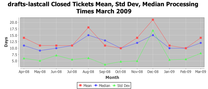 The statistics below are offered to measure IANA's fulfillment of the goals established in the ICANN / IANA - IETF MoU Supplemental Agreement. Further details on these goals and statistics can be found by reviewing the agreement.