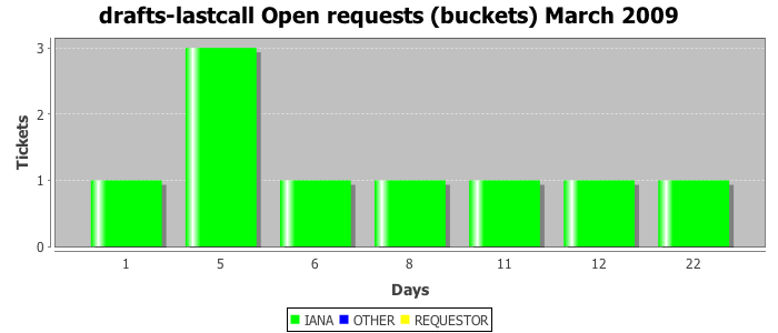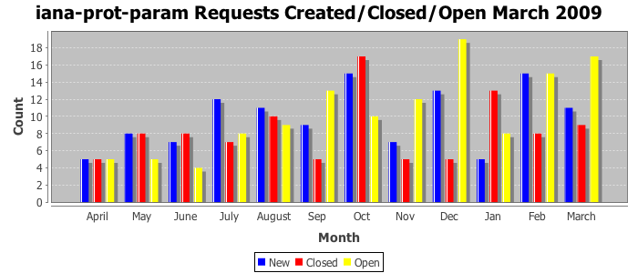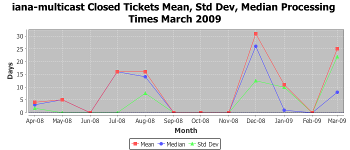 March 2009Due to the nature of resource request reviews, ICANN/IANA and the IETF community are jointly responsible for cooperatively managing the resource request process. ICANN/IANA has control over the functions it performs directly, e.g., receiving requests, making sure they are syntactically and semantically sensible, forwarding the requests to Designated Experts where appropriate, creating and modifying the registries, etc. The IETF community has direct or indirect control over functions performed by third parties, including IESG Designated Experts, the IESG, the IAB, the RFC Editor, and the requester. As such, the processing of requests has a “gross processing time” calendar days goal established for each function and a “net processing time” calendar days goal to reflect time expended directly by ICANN/IANA.
