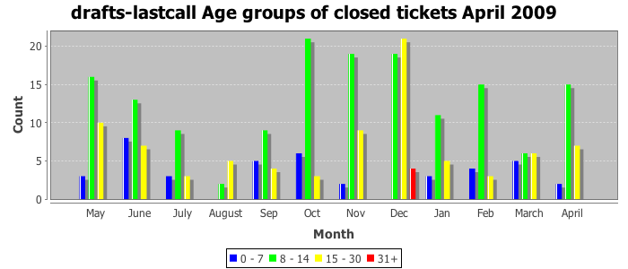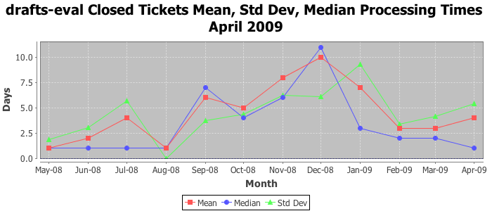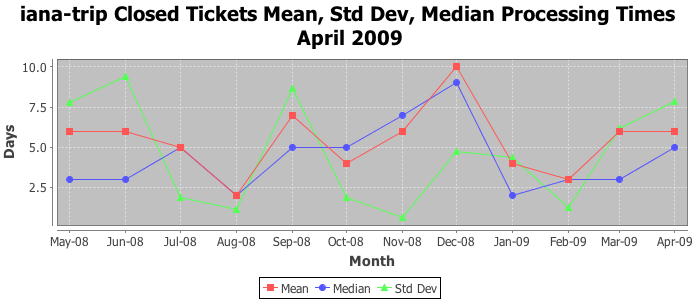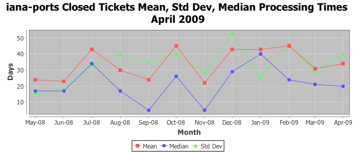 The statistics below are offered to measure IANA's fulfillment of the goals established in the ICANN / IANA - IETF MoU Supplemental Agreement. Further details on these goals and statistics can be found by reviewing the agreement.