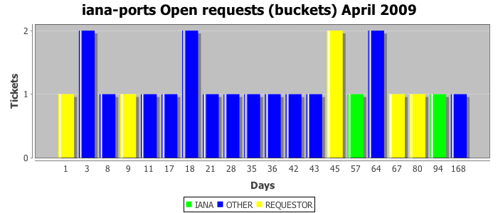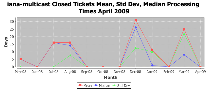 April 2009Due to the nature of resource request reviews, ICANN/IANA and the IETF community are jointly responsible for cooperatively managing the resource request process. ICANN/IANA has control over the functions it performs directly, e.g., receiving requests, making sure they are syntactically and semantically sensible, forwarding the requests to Designated Experts where appropriate, creating and modifying the registries, etc. The IETF community has direct or indirect control over functions performed by third parties, including IESG Designated Experts, the IESG, the IAB, the RFC Editor, and the requester. As such, the processing of requests has a “gross processing time” calendar days goal established for each function and a “net processing time” calendar days goal to reflect time expended directly by ICANN/IANA.