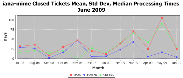 The statistics below are offered to measure IANA's fulfillment of the goals established in the ICANN / IANA - IETF MoU Supplemental Agreement. Further details on these goals and statistics can be found by reviewing the agreement.