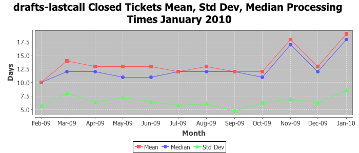 The statistics below are offered to measure IANA's fulfillment of the goals established in the ICANN / IANA - IETF MoU Supplemental Agreement. Further details on these goals and statistics can be found by reviewing the agreement.