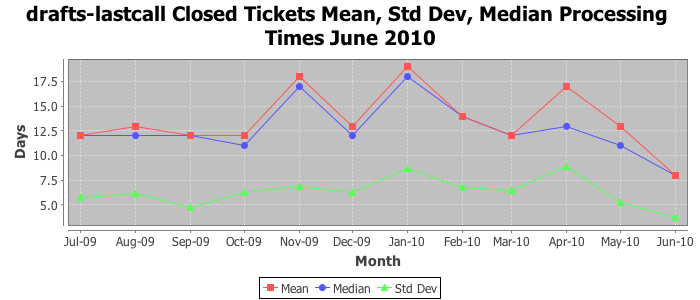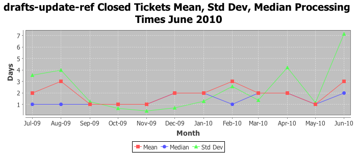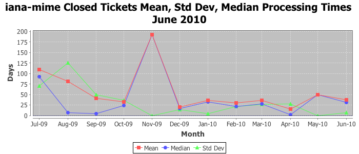 The statistics below are offered to measure IANA's fulfillment of the goals established in the ICANN / IANA - IETF MoU Supplemental Agreement. Further details on these goals and statistics can be found by reviewing the agreement.