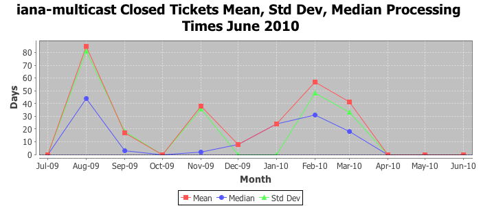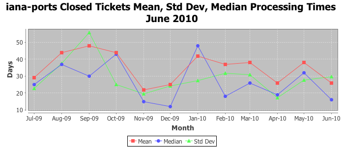 June 2010Due to the nature of resource request reviews, ICANN/IANA and the IETF community are jointly responsible for cooperatively managing the resource request process. ICANN/IANA has control over the functions it performs directly, e.g., receiving requests, making sure they are syntactically and semantically sensible, forwarding the requests to Designated Experts where appropriate, creating and modifying the registries, etc. The IETF community has direct or indirect control over functions performed by third parties, including IESG Designated Experts, the IESG, the IAB, the RFC Editor, and the requester. As such, the processing of requests has a “gross processing time” calendar days goal established for each function and a “net processing time” calendar days goal to reflect time expended directly by ICANN/IANA.