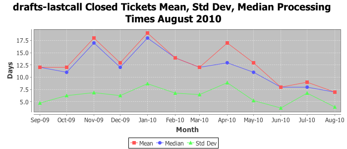 The statistics below are offered to measure IANA's fulfillment of the goals established in the ICANN / IANA - IETF MoU Supplemental Agreement. Further details on these goals and statistics can be found by reviewing the agreement.