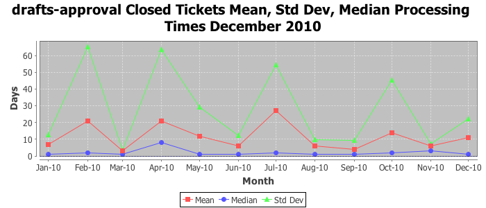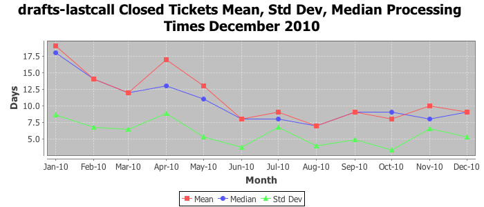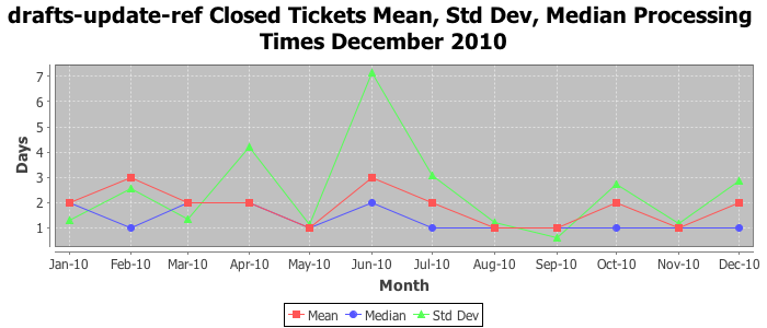 The statistics below are offered to measure IANA's fulfillment of the goals established in the ICANN / IANA - IETF MoU Supplemental Agreement. Further details on these goals and statistics can be found by reviewing the agreement.