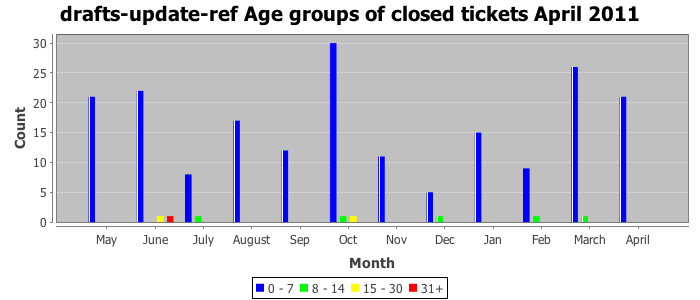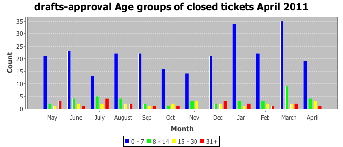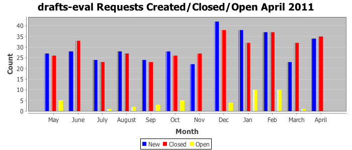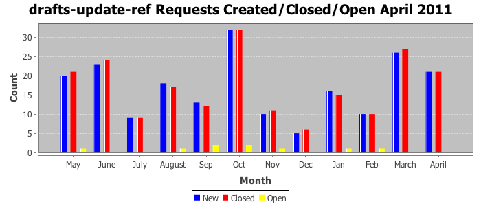 The statistics below are offered to measure IANA's fulfillment of the goals established in the ICANN / IANA - IETF MoU Supplemental Agreement. Further details on these goals and statistics can be found by reviewing the agreement.