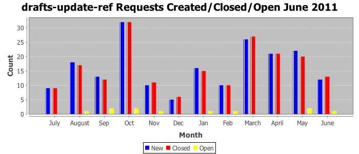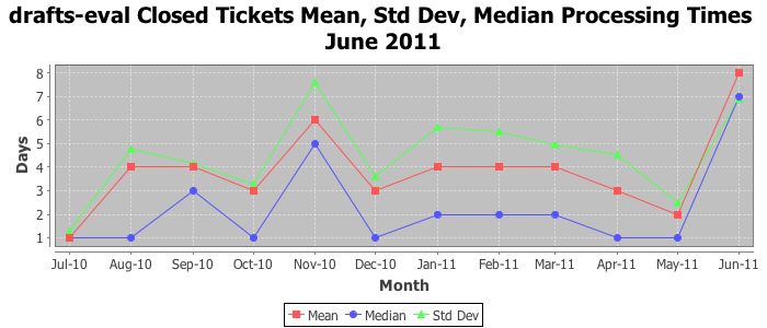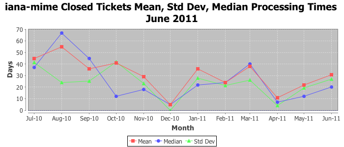 The statistics below are offered to measure IANA's fulfillment of the goals established in the ICANN / IANA - IETF MoU Supplemental Agreement. Further details on these goals and statistics can be found by reviewing the agreement.