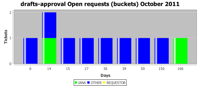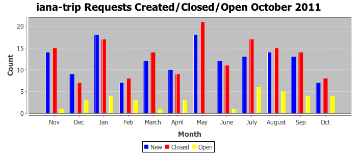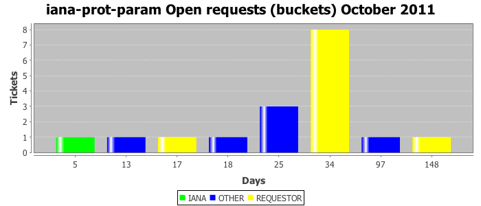 October 2011Due to the nature of resource request reviews, ICANN/IANA and the IETF community are jointly responsible for cooperatively managing the resource request process. ICANN/IANA has control over the functions it performs directly, e.g., receiving requests, making sure they are syntactically and semantically sensible, forwarding the requests to Designated Experts where appropriate, creating and modifying the registries, etc. The IETF community has direct or indirect control over functions performed by third parties, including IESG Designated Experts, the IESG, the IAB, the RFC Editor, and the requester. As such, the processing of requests has a “gross processing time” calendar days goal established for each function and a “net processing time” calendar days goal to reflect time expended directly by ICANN/IANA.