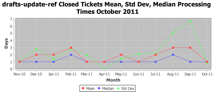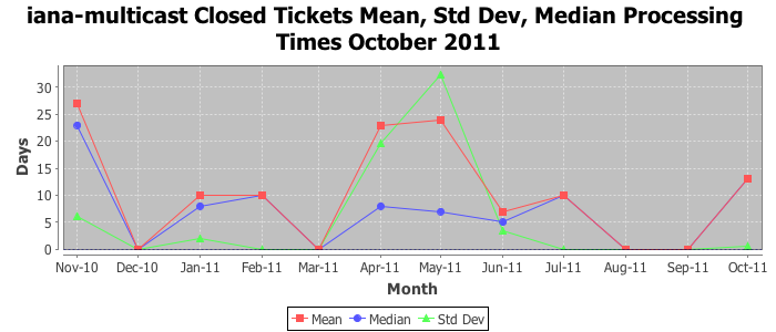 The statistics below are offered to measure IANA's fulfillment of the goals established in the ICANN / IANA - IETF MoU Supplemental Agreement. Further details on these goals and statistics can be found by reviewing the agreement.