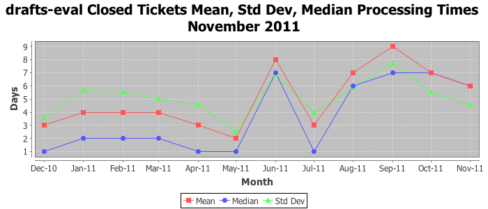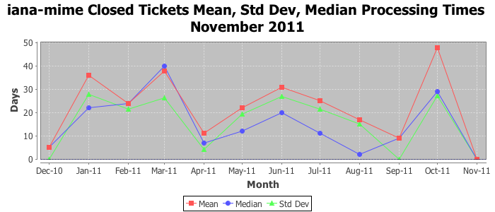 The statistics below are offered to measure IANA's fulfillment of the goals established in the ICANN / IANA - IETF MoU Supplemental Agreement. Further details on these goals and statistics can be found by reviewing the agreement.