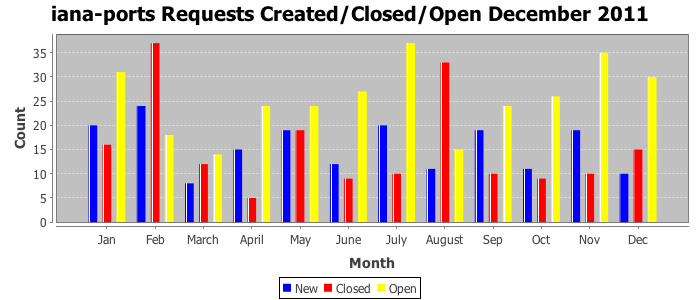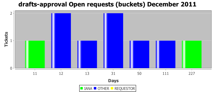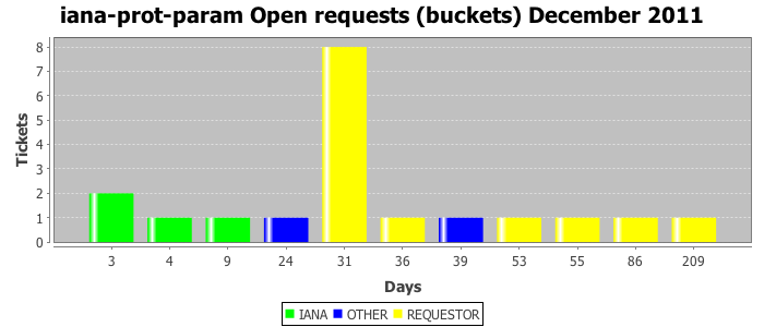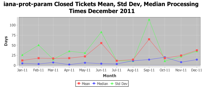 December 2011Due to the nature of resource request reviews, ICANN/IANA and the IETF community are jointly responsible for cooperatively managing the resource request process. ICANN/IANA has control over the functions it performs directly, e.g., receiving requests, making sure they are syntactically and semantically sensible, forwarding the requests to Designated Experts where appropriate, creating and modifying the registries, etc. The IETF community has direct or indirect control over functions performed by third parties, including IESG Designated Experts, the IESG, the IAB, the RFC Editor, and the requester. As such, the processing of requests has a “gross processing time” calendar days goal established for each function and a “net processing time” calendar days goal to reflect time expended directly by ICANN/IANA.