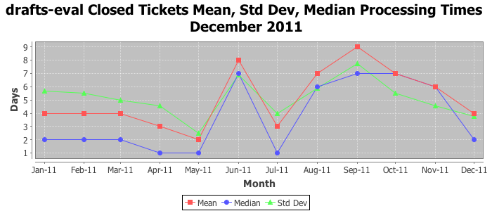 The statistics below are offered to measure IANA's fulfillment of the goals established in the ICANN / IANA - IETF MoU Supplemental Agreement. Further details on these goals and statistics can be found by reviewing the agreement.