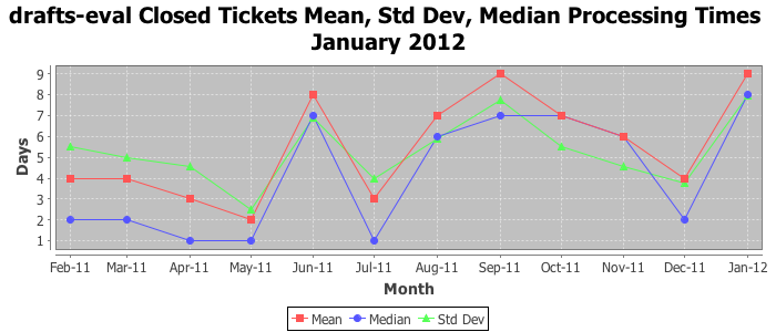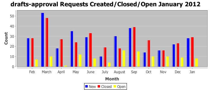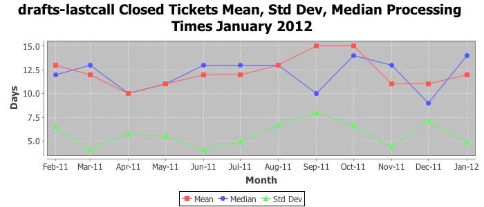 The statistics below are offered to measure IANA's fulfillment of the goals established in the ICANN / IANA - IETF MoU Supplemental Agreement. Further details on these goals and statistics can be found by reviewing the agreement.