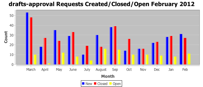 The statistics below are offered to measure IANA's fulfillment of the goals established in the ICANN / IANA - IETF MoU Supplemental Agreement. Further details on these goals and statistics can be found by reviewing the agreement.