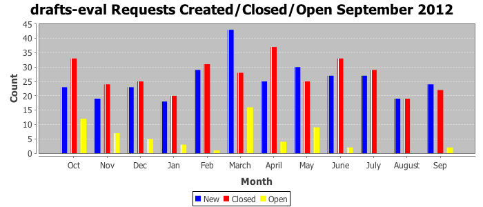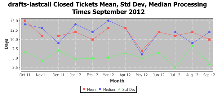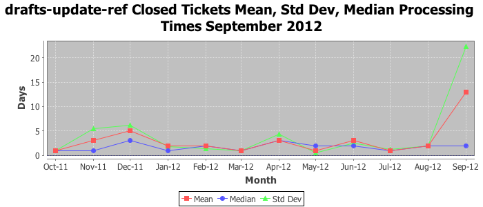 The statistics below are offered to measure IANA's fulfillment of the goals established in the ICANN / IANA - IETF MoU Supplemental Agreement. Further details on these goals and statistics can be found by reviewing the agreement.