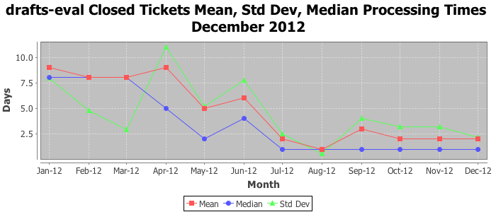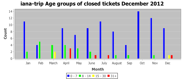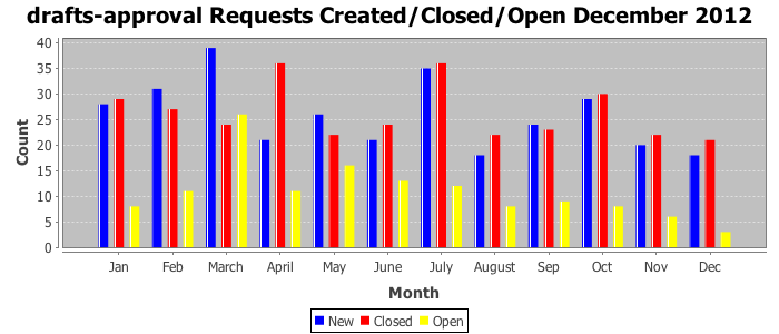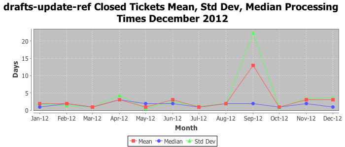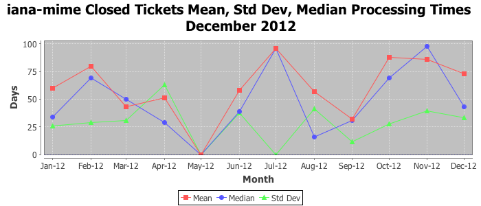 The statistics below are offered to measure IANA's fulfillment of the goals established in the ICANN / IANA - IETF MoU Supplemental Agreement. Further details on these goals and statistics can be found by reviewing the agreement.