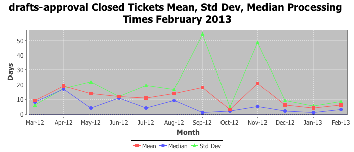 The statistics below are offered to measure IANA's fulfillment of the goals established in the ICANN / IANA - IETF MoU Supplemental Agreement. Further details on these goals and statistics can be found by reviewing the agreement.