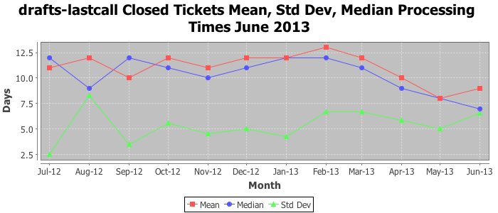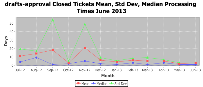 The statistics below are offered to measure IANA's fulfillment of the goals established in the ICANN / IANA - IETF MoU Supplemental Agreement. Further details on these goals and statistics can be found by reviewing the agreement.