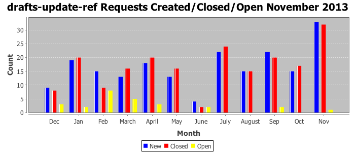 The statistics below are offered to measure IANA's fulfillment of the goals established in the ICANN / IANA - IETF MoU Supplemental Agreement. Further details on these goals and statistics can be found by reviewing the agreement.