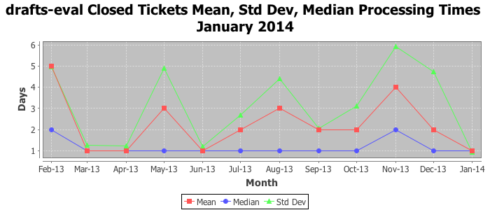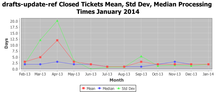 The statistics below are offered to measure IANA's fulfillment of the goals established in the ICANN / IANA - IETF MoU Supplemental Agreement. Further details on these goals and statistics can be found by reviewing the agreement.