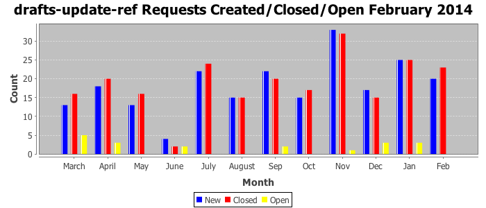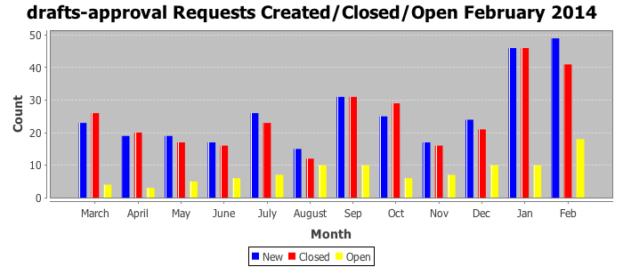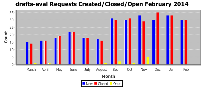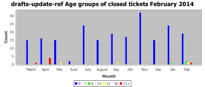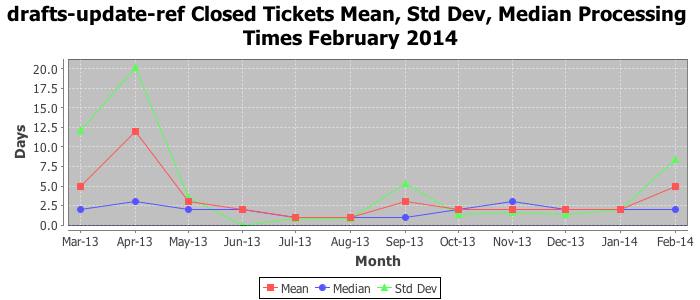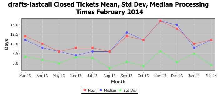 The statistics below are offered to measure IANA's fulfillment of the goals established in the ICANN / IANA - IETF MoU Supplemental Agreement. Further details on these goals and statistics can be found by reviewing the agreement.