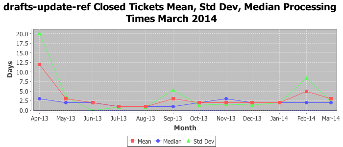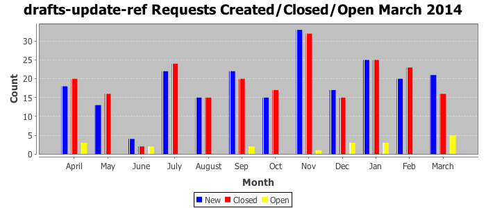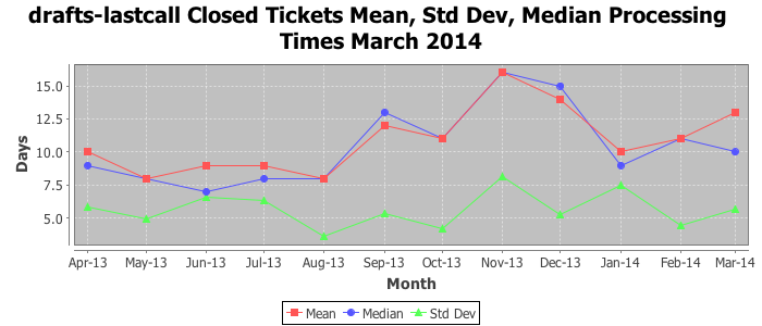 The statistics below are offered to measure IANA's fulfillment of the goals established in the ICANN / IANA - IETF MoU Supplemental Agreement. Further details on these goals and statistics can be found by reviewing the agreement.