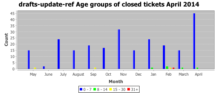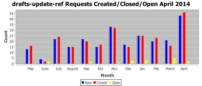 The statistics below are offered to measure IANA's fulfillment of the goals established in the ICANN / IANA - IETF MoU Supplemental Agreement. Further details on these goals and statistics can be found by reviewing the agreement.