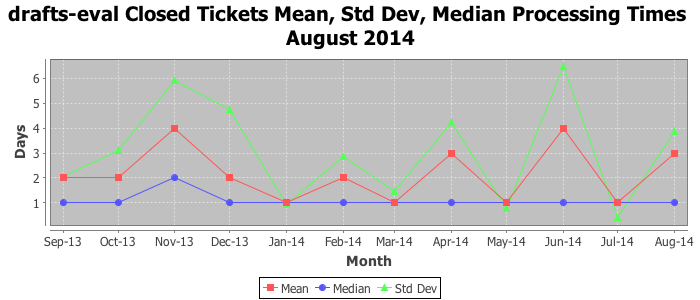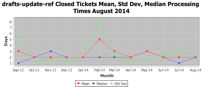 The statistics below are offered to measure IANA's fulfillment of the goals established in the ICANN / IANA - IETF MoU Supplemental Agreement. Further details on these goals and statistics can be found by reviewing the agreement.
