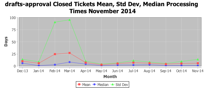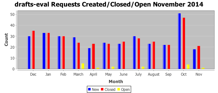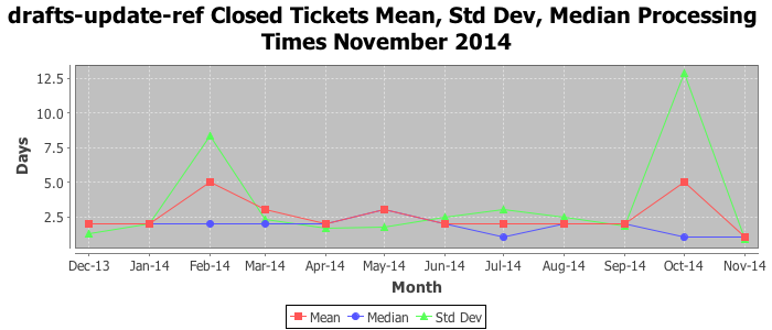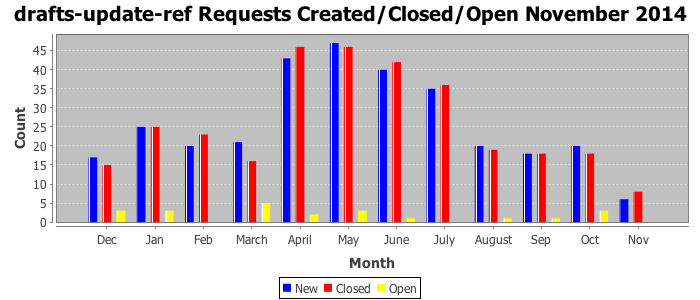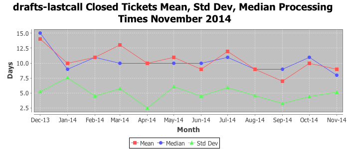 The statistics below are offered to measure IANA's fulfillment of the goals established in the ICANN / IANA - IETF MoU Supplemental Agreement. Further details on these goals and statistics can be found by reviewing the agreement.