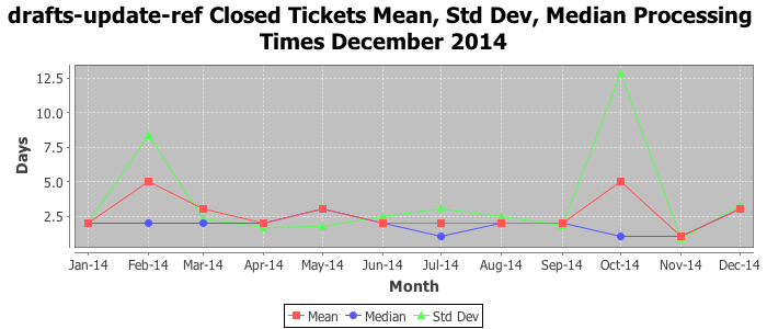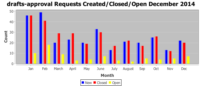 The statistics below are offered to measure IANA's fulfillment of the goals established in the ICANN / IANA - IETF MoU Supplemental Agreement. Further details on these goals and statistics can be found by reviewing the agreement.