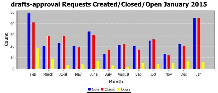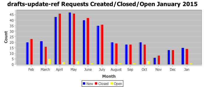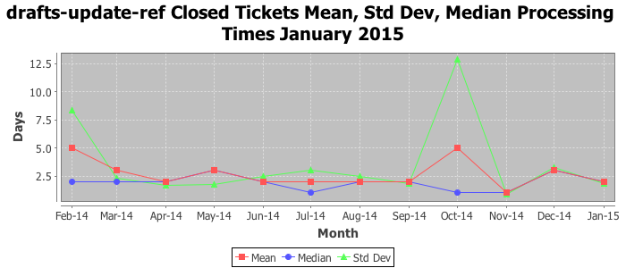 The statistics below are offered to measure IANA's fulfillment of the goals established in the ICANN / IANA - IETF MoU Supplemental Agreement. Further details on these goals and statistics can be found by reviewing the agreement.