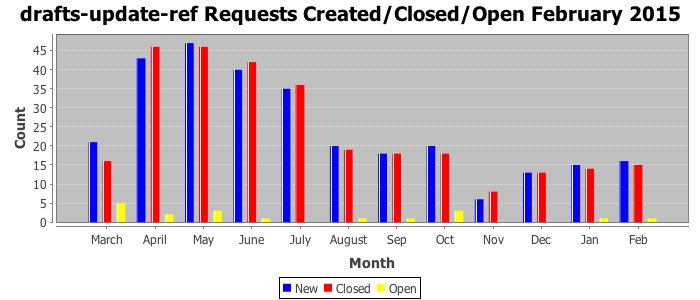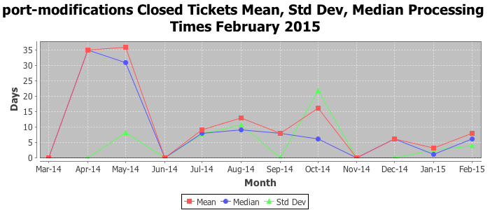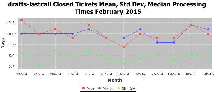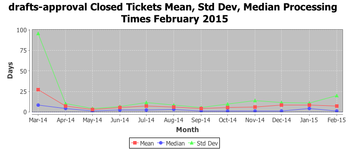 The statistics below are offered to measure IANA's fulfillment of the goals established in the ICANN / IANA - IETF MoU Supplemental Agreement. Further details on these goals and statistics can be found by reviewing the agreement.