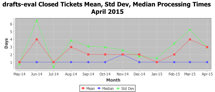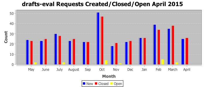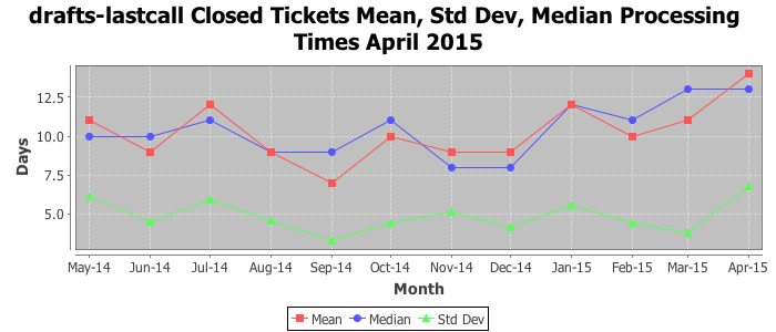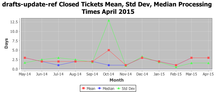 The statistics below are offered to measure IANA's fulfillment of the goals established in the ICANN / IANA - IETF MoU Supplemental Agreement. Further details on these goals and statistics can be found by reviewing the agreement.