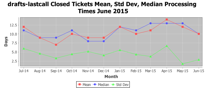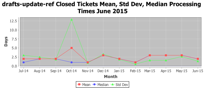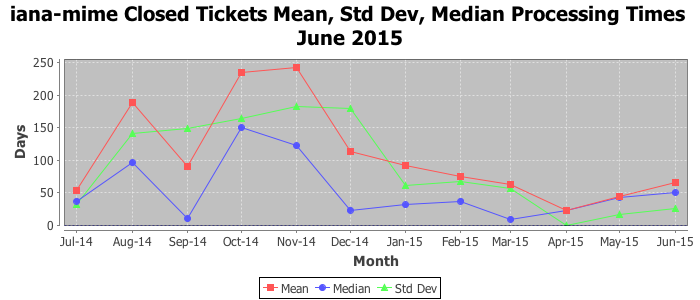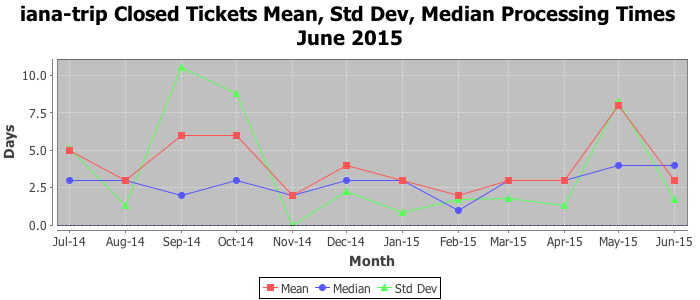 The statistics below are offered to measure IANA's fulfillment of the goals established in the ICANN / IANA - IETF MoU Supplemental Agreement. Further details on these goals and statistics can be found by reviewing the agreement.