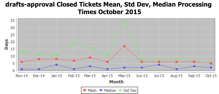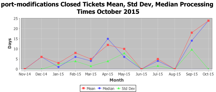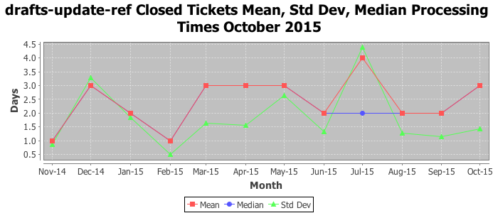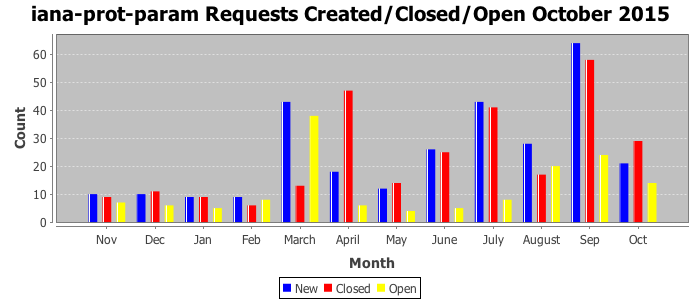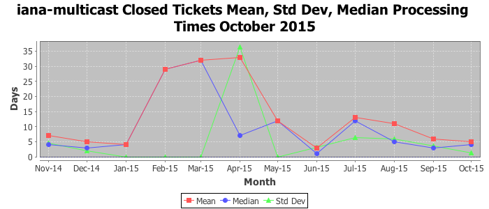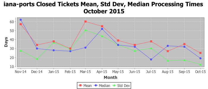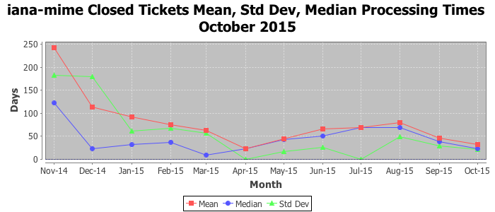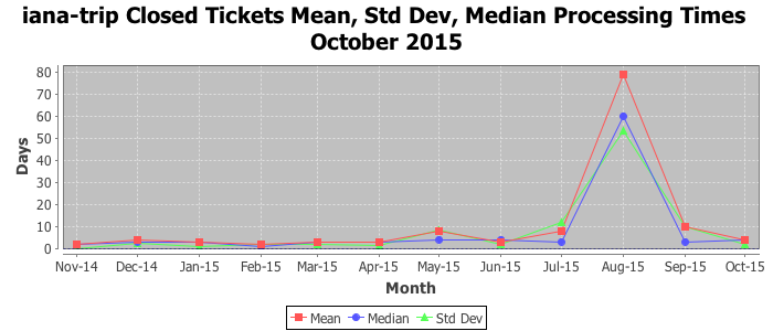 The statistics below are offered to measure IANA's fulfillment of the goals established in the ICANN / IANA - IETF MoU Supplemental Agreement. Further details on these goals and statistics can be found by reviewing the agreement.