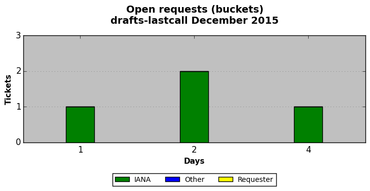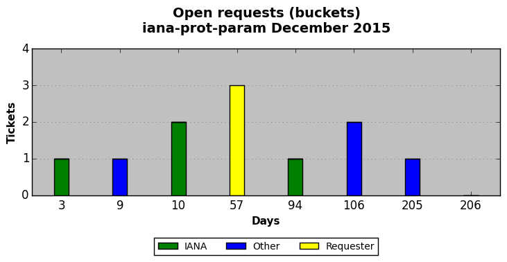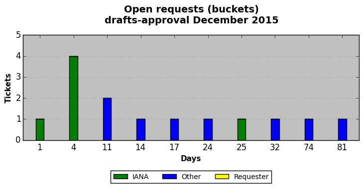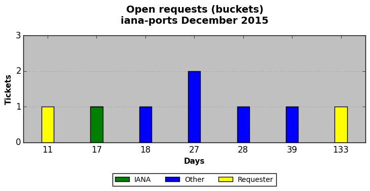 December 2015Due to the nature of resource request reviews, ICANN/IANA and the IETF community are jointly responsible for cooperatively managing the resource request process. ICANN/IANA has control over the functions it performs directly, e.g., receiving requests, making sure they are syntactically and semantically sensible, forwarding the requests to Designated Experts where appropriate, creating and modifying the registries, etc. The IETF community has direct or indirect control over functions performed by third parties, including IESG Designated Experts, the IESG, the IAB, the RFC Editor, and the requester. As such, the processing of requests has a “gross processing time” calendar days goal established for each function and a “net processing time” calendar days goal to reflect time expended directly by ICANN/IANA.