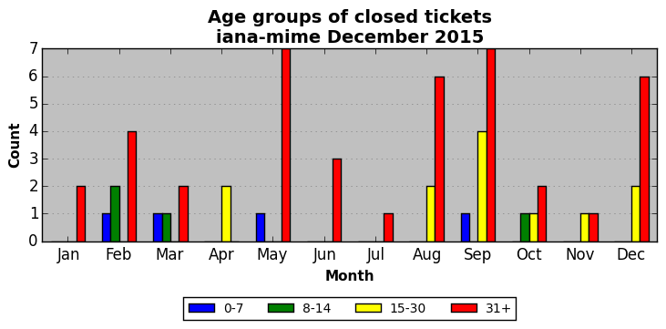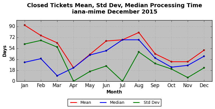 The statistics below are offered to measure IANA's fulfillment of the goals established in the ICANN / IANA - IETF MoU Supplemental Agreement. Further details on these goals and statistics can be found by reviewing the agreement.