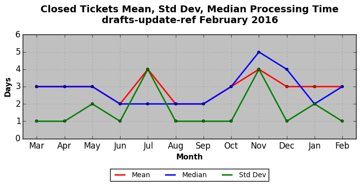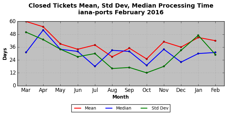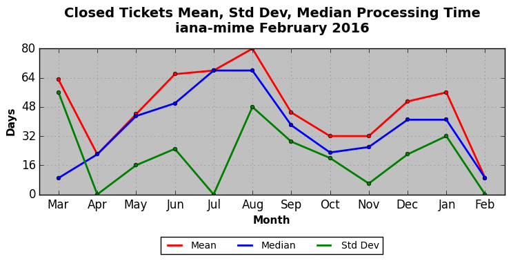 The statistics below are offered to measure IANA's fulfillment of the goals established in the ICANN / IANA - IETF MoU Supplemental Agreement. Further details on these goals and statistics can be found by reviewing the agreement.