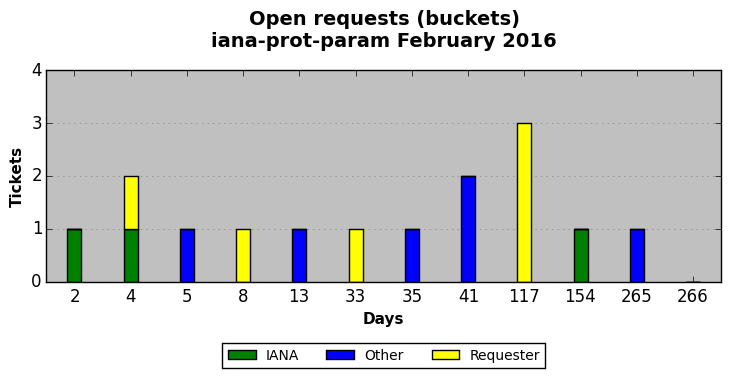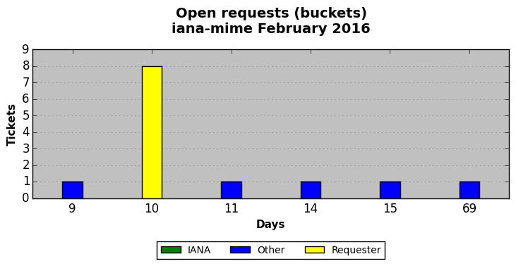 February 2016Due to the nature of resource request reviews, ICANN/IANA and the IETF community are jointly responsible for cooperatively managing the resource request process. ICANN/IANA has control over the functions it performs directly, e.g., receiving requests, making sure they are syntactically and semantically sensible, forwarding the requests to Designated Experts where appropriate, creating and modifying the registries, etc. The IETF community has direct or indirect control over functions performed by third parties, including IESG Designated Experts, the IESG, the IAB, the RFC Editor, and the requester. As such, the processing of requests has a “gross processing time” calendar days goal established for each function and a “net processing time” calendar days goal to reflect time expended directly by ICANN/IANA.