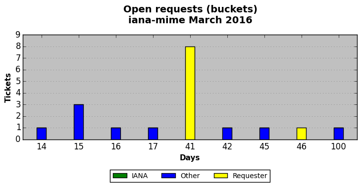 March 2016Due to the nature of resource request reviews, ICANN/IANA and the IETF community are jointly responsible for cooperatively managing the resource request process. ICANN/IANA has control over the functions it performs directly, e.g., receiving requests, making sure they are syntactically and semantically sensible, forwarding the requests to Designated Experts where appropriate, creating and modifying the registries, etc. The IETF community has direct or indirect control over functions performed by third parties, including IESG Designated Experts, the IESG, the IAB, the RFC Editor, and the requester. As such, the processing of requests has a “gross processing time” calendar days goal established for each function and a “net processing time” calendar days goal to reflect time expended directly by ICANN/IANA.
