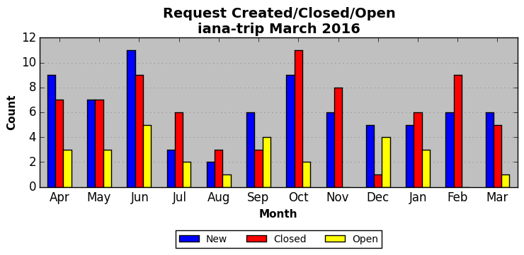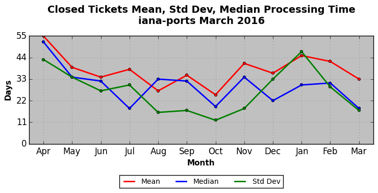 The statistics below are offered to measure IANA's fulfillment of the goals established in the ICANN / IANA - IETF MoU Supplemental Agreement. Further details on these goals and statistics can be found by reviewing the agreement.